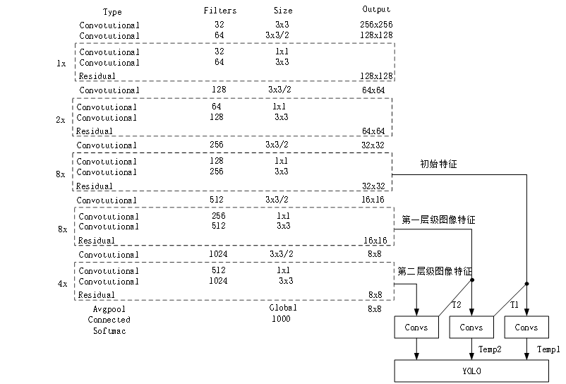 图1-10 对比文件1的YOLOv3网络结构示意图